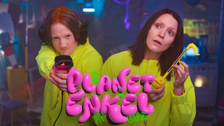 Planet Enkel is a humorous science show about the simple man and its simple technology. Two human-like alien influencers broadcast a TV show for their home planet Xaven from Finland. Each episode deals with an object, or aspect of human technology. The genre is humor for 10-12 year olds. The series is written and directed by Theo af Enehielm and Dan Nickström. The series is produces by Five Corners Productions and was published on the finnish national broad company (YLE) on 5th of April 2025